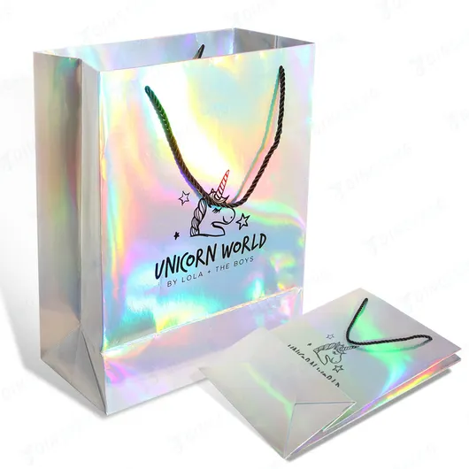 Glossy Holographic Cosmetics Gift Cardboard Paper Bag